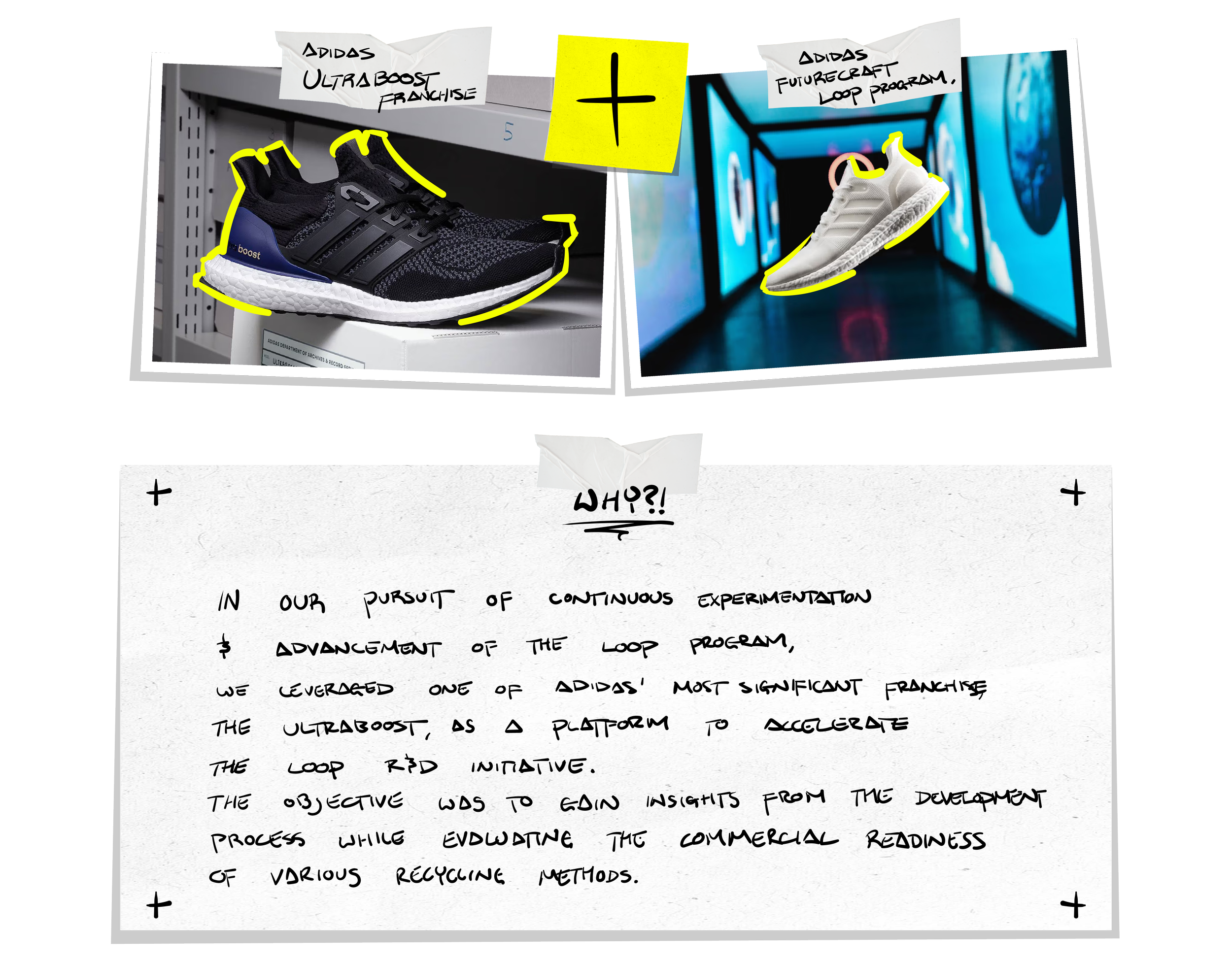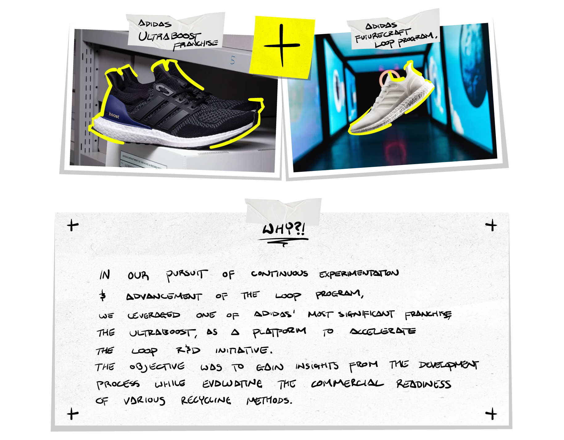 Building on the success of the Adidas FutureCraft Loop, our team was tasked with developing the next phase of the program: Circular Loop. The goal was to test and validate the readiness of the Loop toolbox of materials and manufacturing methods. Through this process, we successfully filed a patent focused on shoe recycling.