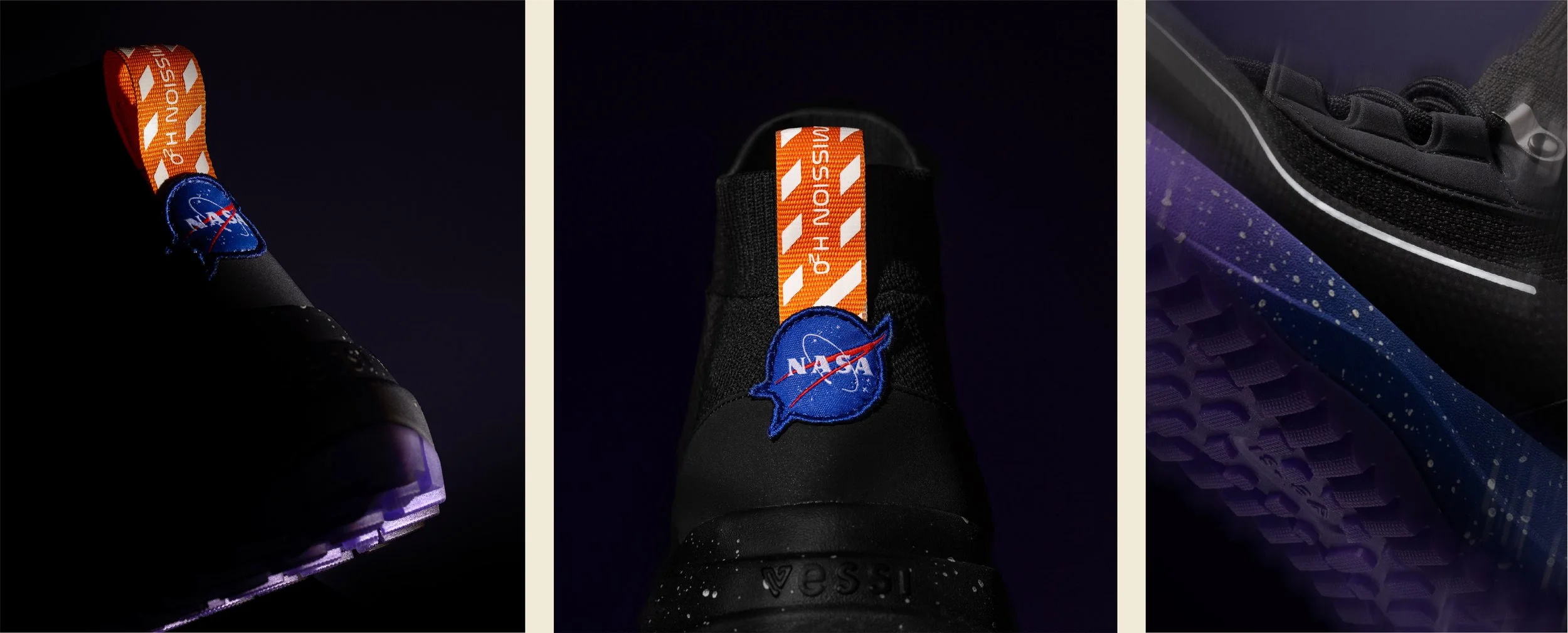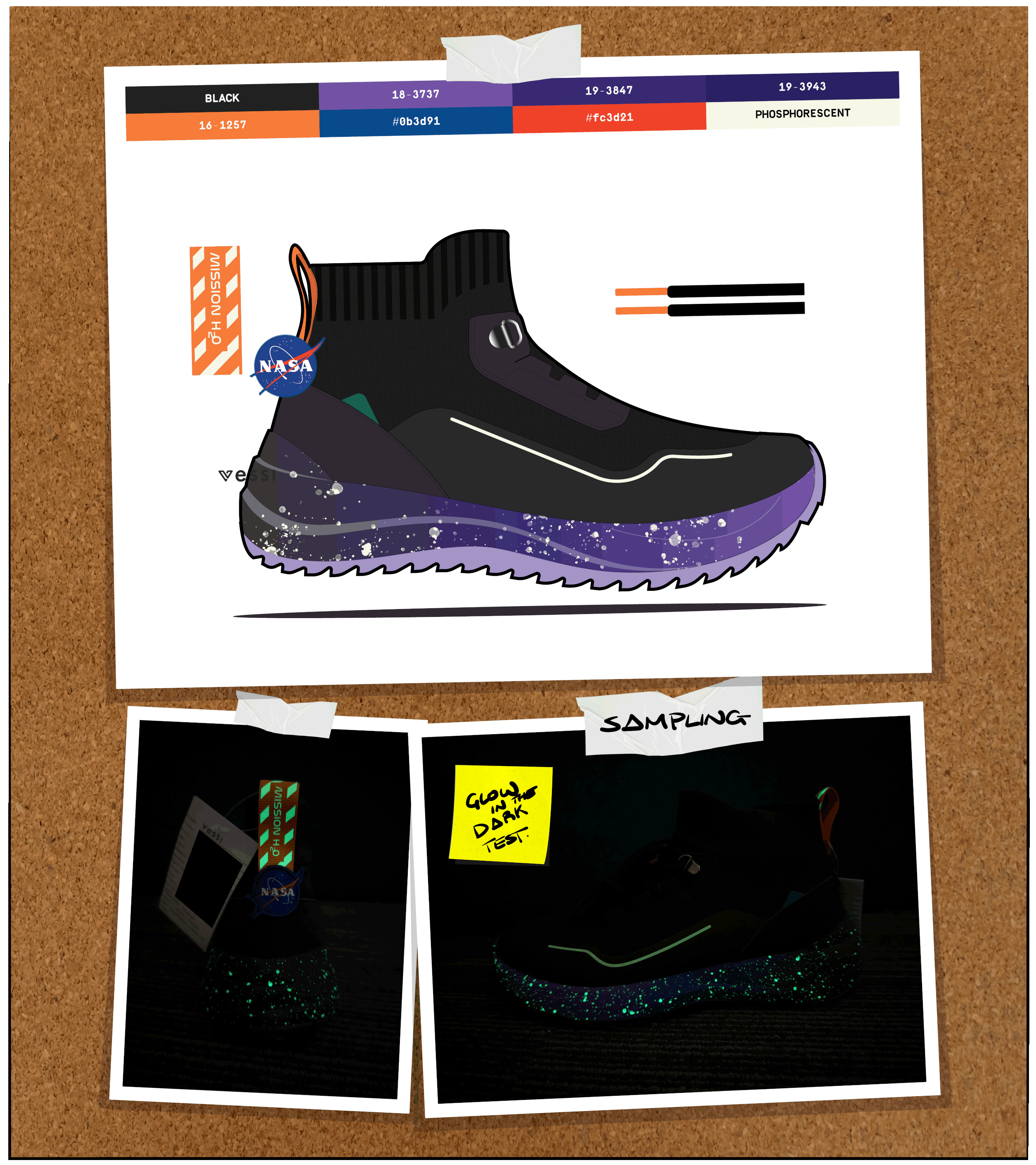 In collaboration with NASA, our objective was to develop a compelling visual narrative through CMF, applied to one of Vessi's key franchise styles: the Stormburst.